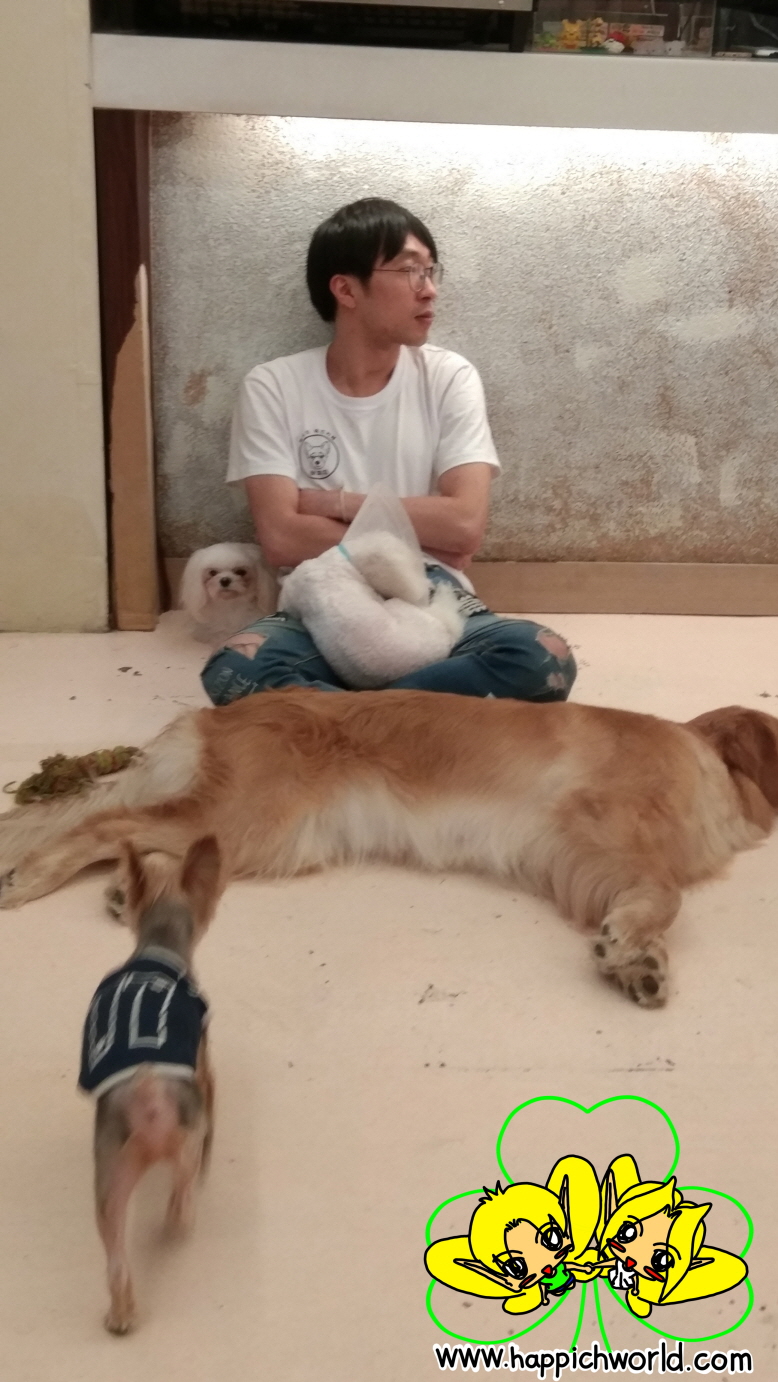 앉아서 강아지들하고 쉬고 있을 때,