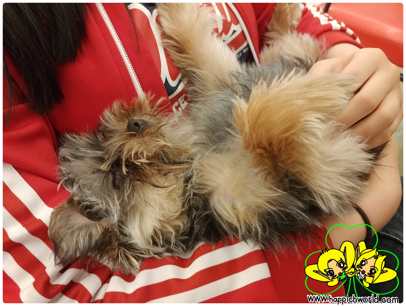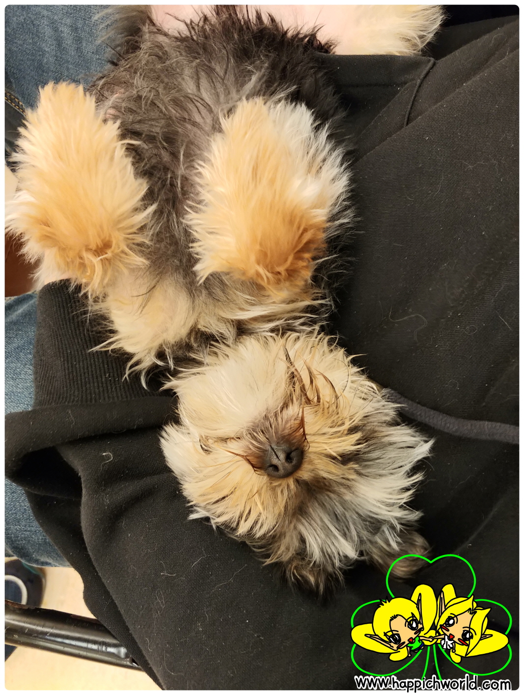 이번에도 손님 품에서 완전 편히 잠을 청하는 해피.ㅋㅋ