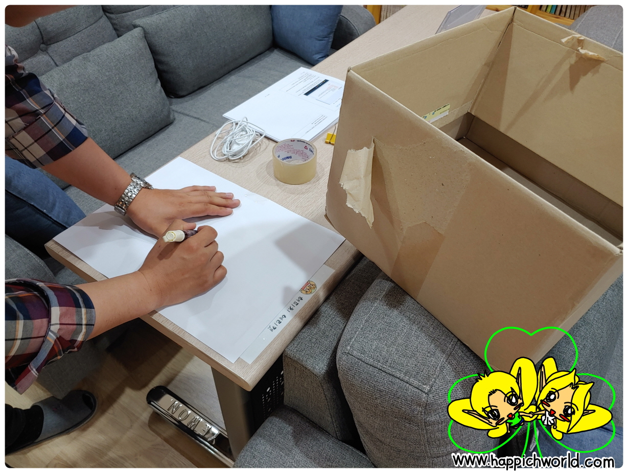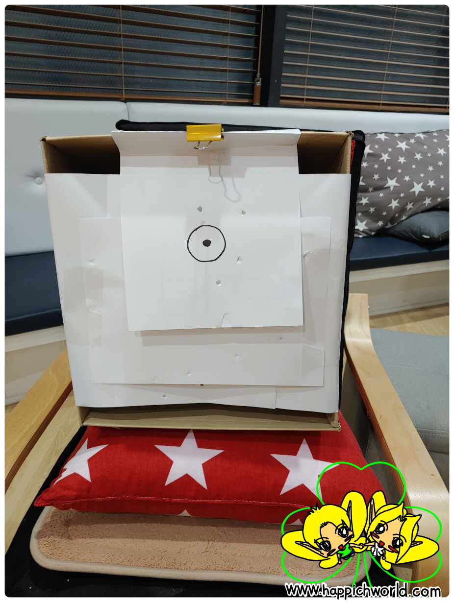 일단, 박스랑 종이를 이용해 과녁을 만들고요.ㅎ