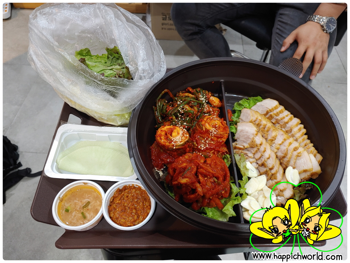 만화카페에 오자마자 보쌈을 같이 먹었습니다.ㅎㅎ