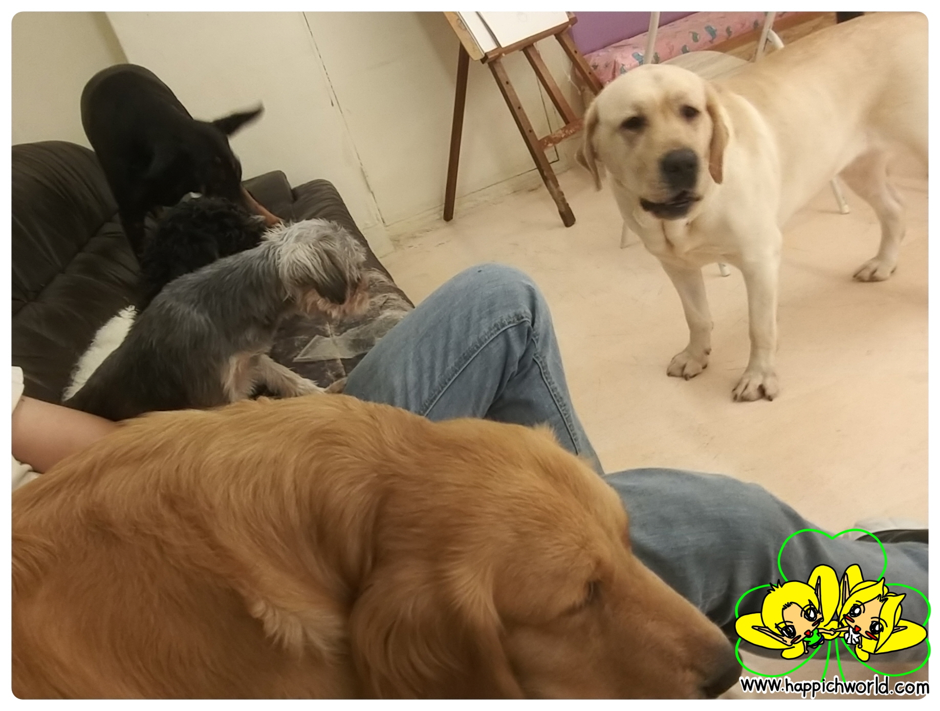 제가 소파에 앉아서 쉬고 있는데, 다른 강아지들도 다가와서 같이 쉬고 있었어요.ㅎ