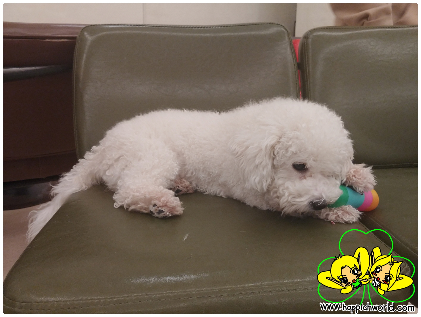 밀키가 의자 위에서 장난감을 가지고 놀면서 쉬네요.ㅎㅎ