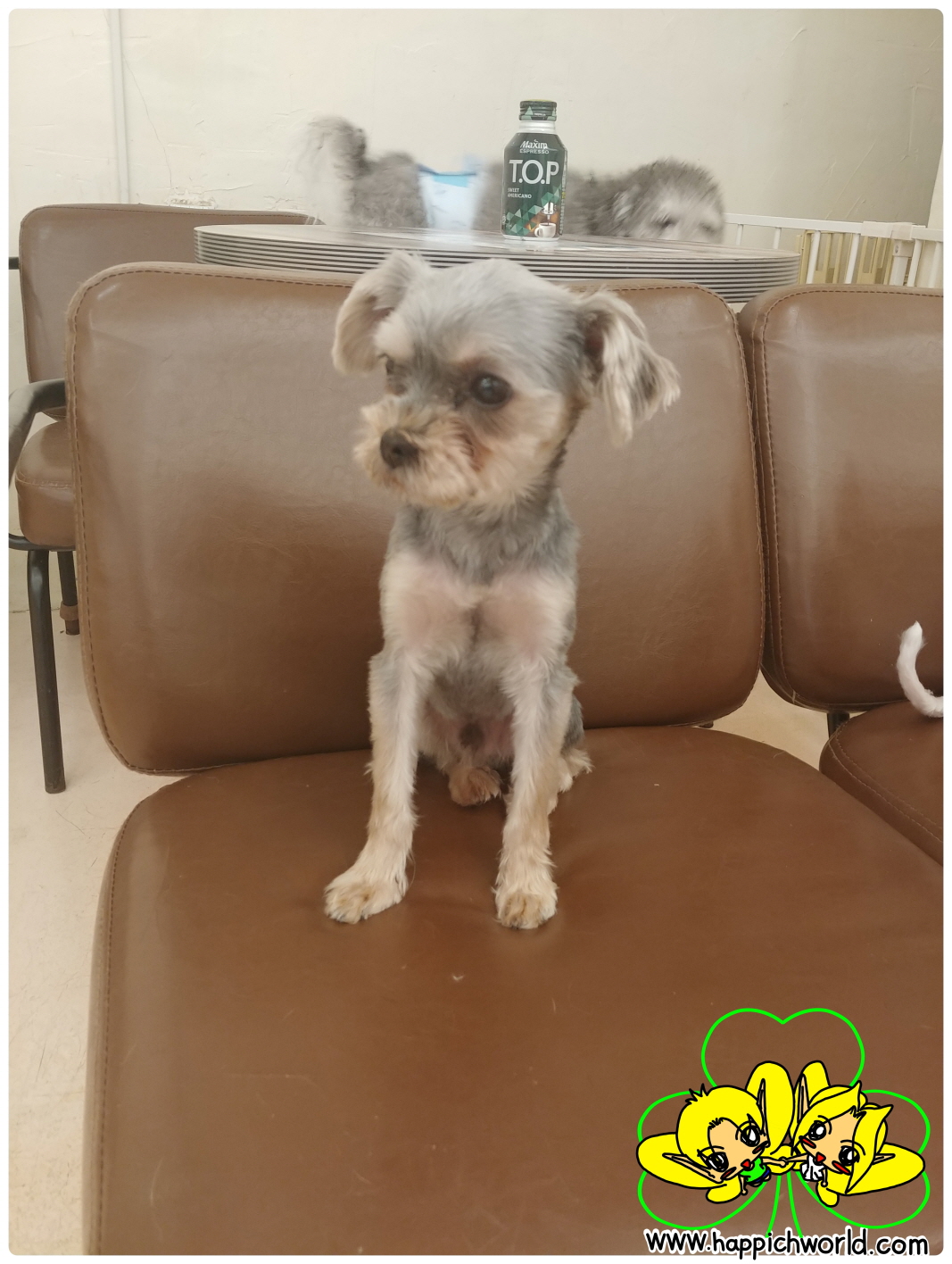 해피가 의자에 앉아있네요.ㅎㅎ 오른쪽에 밀키도 살짝 보이고요.ㅋ