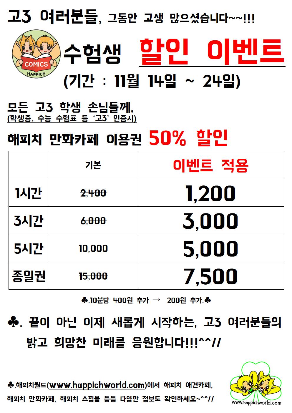 해피치 만화카페 이용권 50% 할인 이벤트를 진행합니다^^
