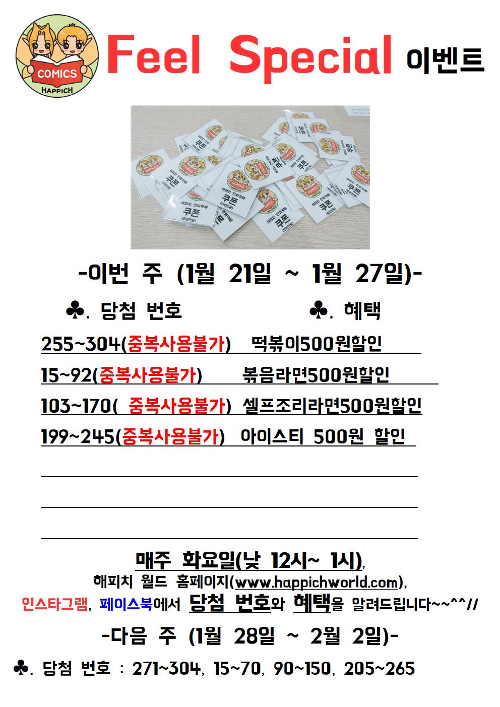 | [이벤트] Feel Special 1월 28일 ~ 2월 2일 (0) | 2020.01.28 |