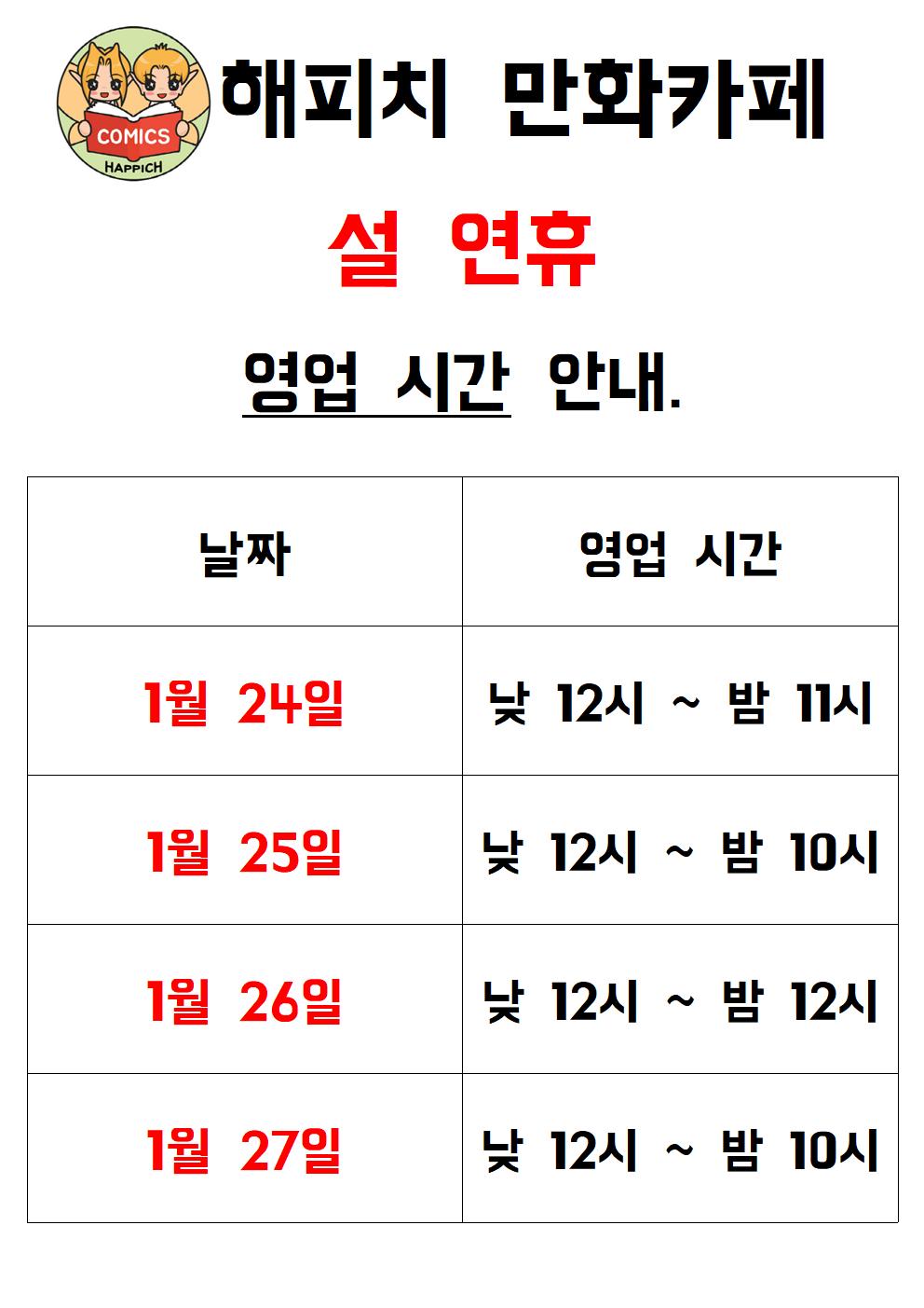 24일엔 낮 12시~ 밤 11시, 25일엔 낮 12시~ 밤 10시,