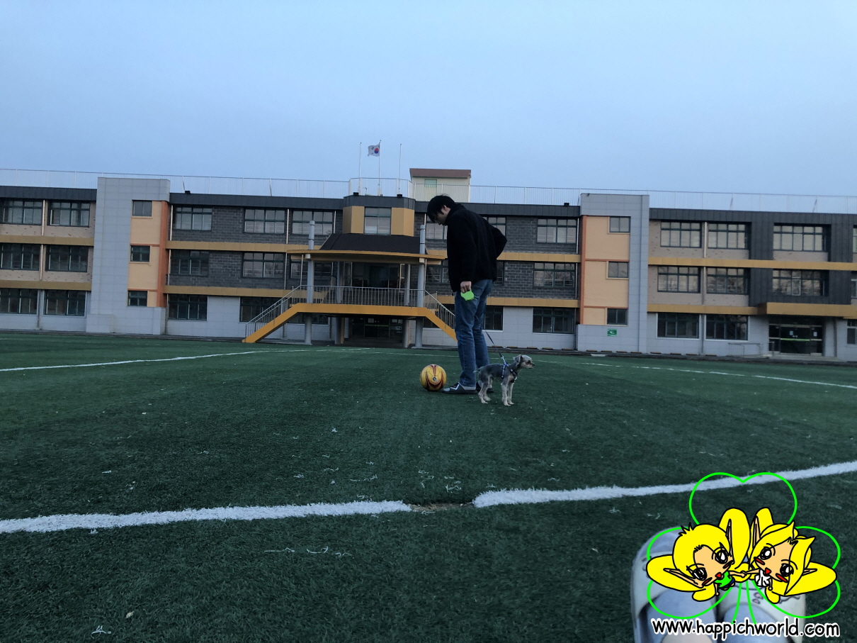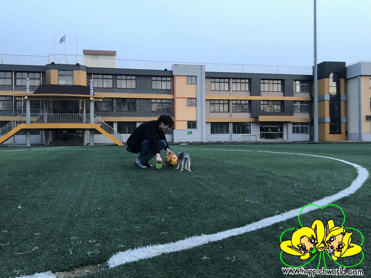 아마 공 가지고 해피랑 같이 놀려고 했을 때 올킹이 찍은 사진인 듯 합니다.ㅎ