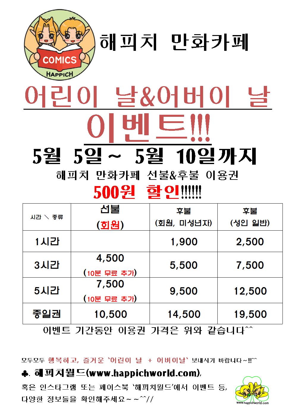 | 해피치 만화카페 일부 음료 가격 500원 할인 안내. (0) | 2020.05.05 |