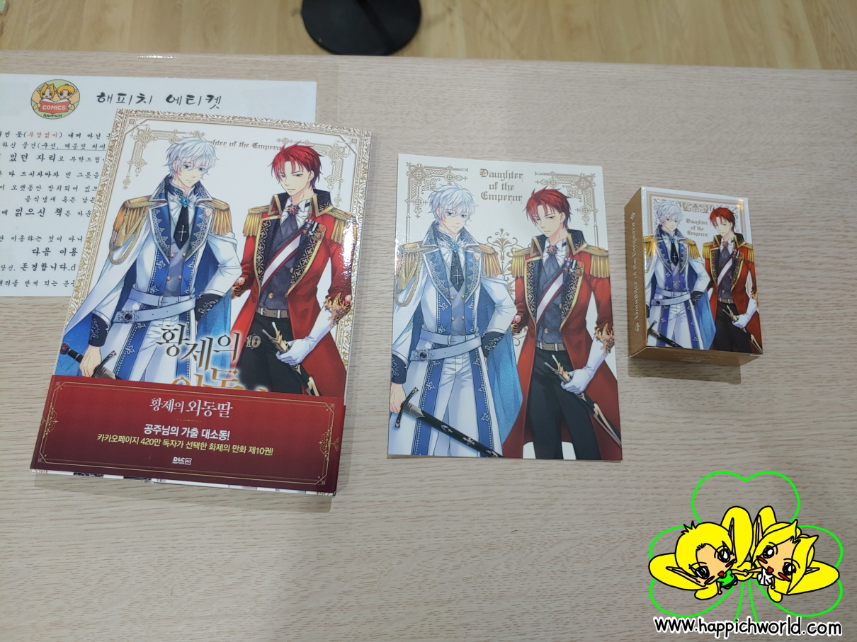 한정판 구성은, 웹툰 황제의 외동딸 10권 단행본, 일러스트 카드 그리고 트럼프카드입니다.ㅎ