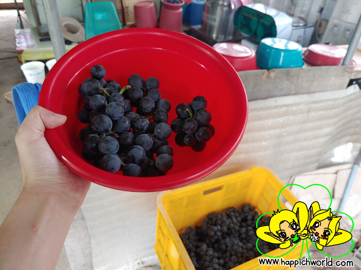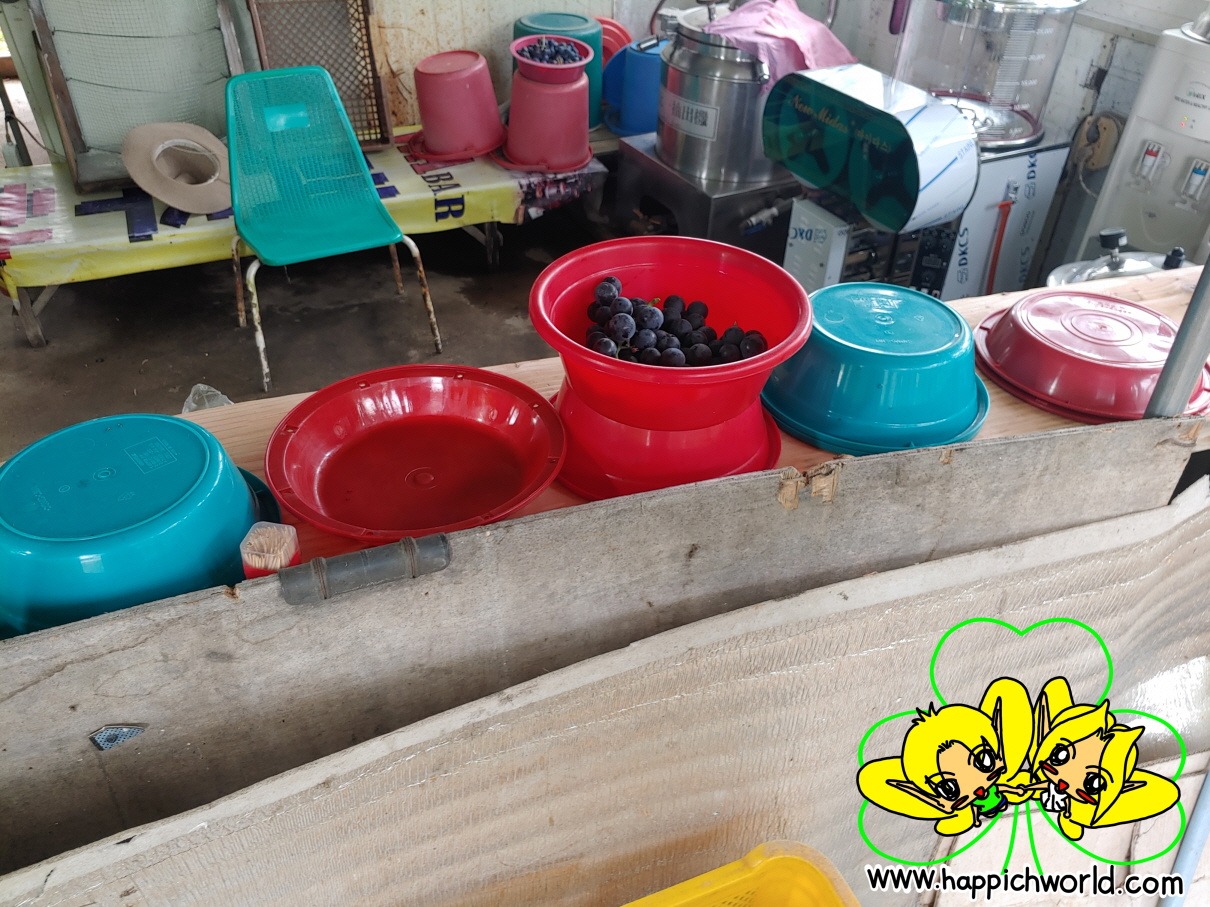 여기에 있는 바구니로 양껏 포도를 담아서 맛 보시면 됩니다^^