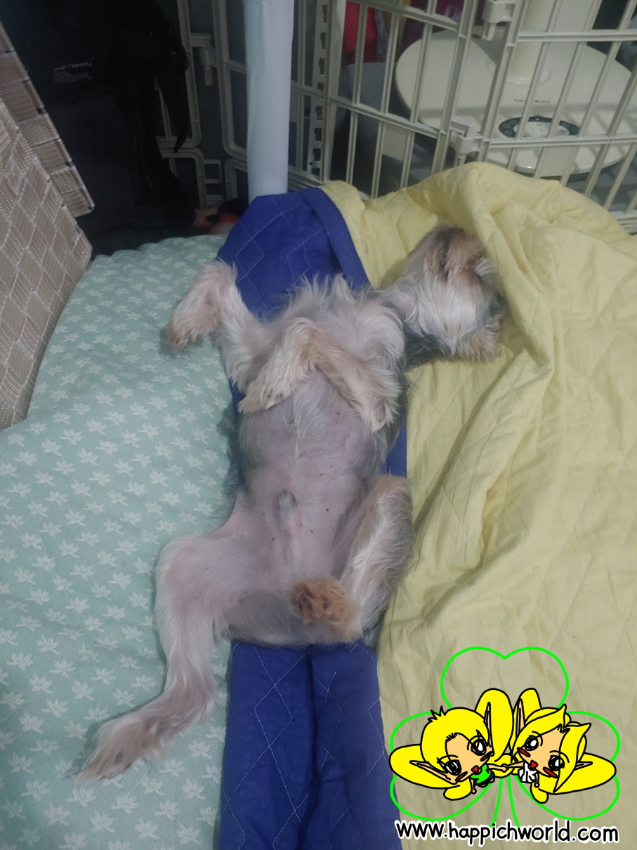 해피의 자는 모습이 웃겨서 사진을 찍었는데,