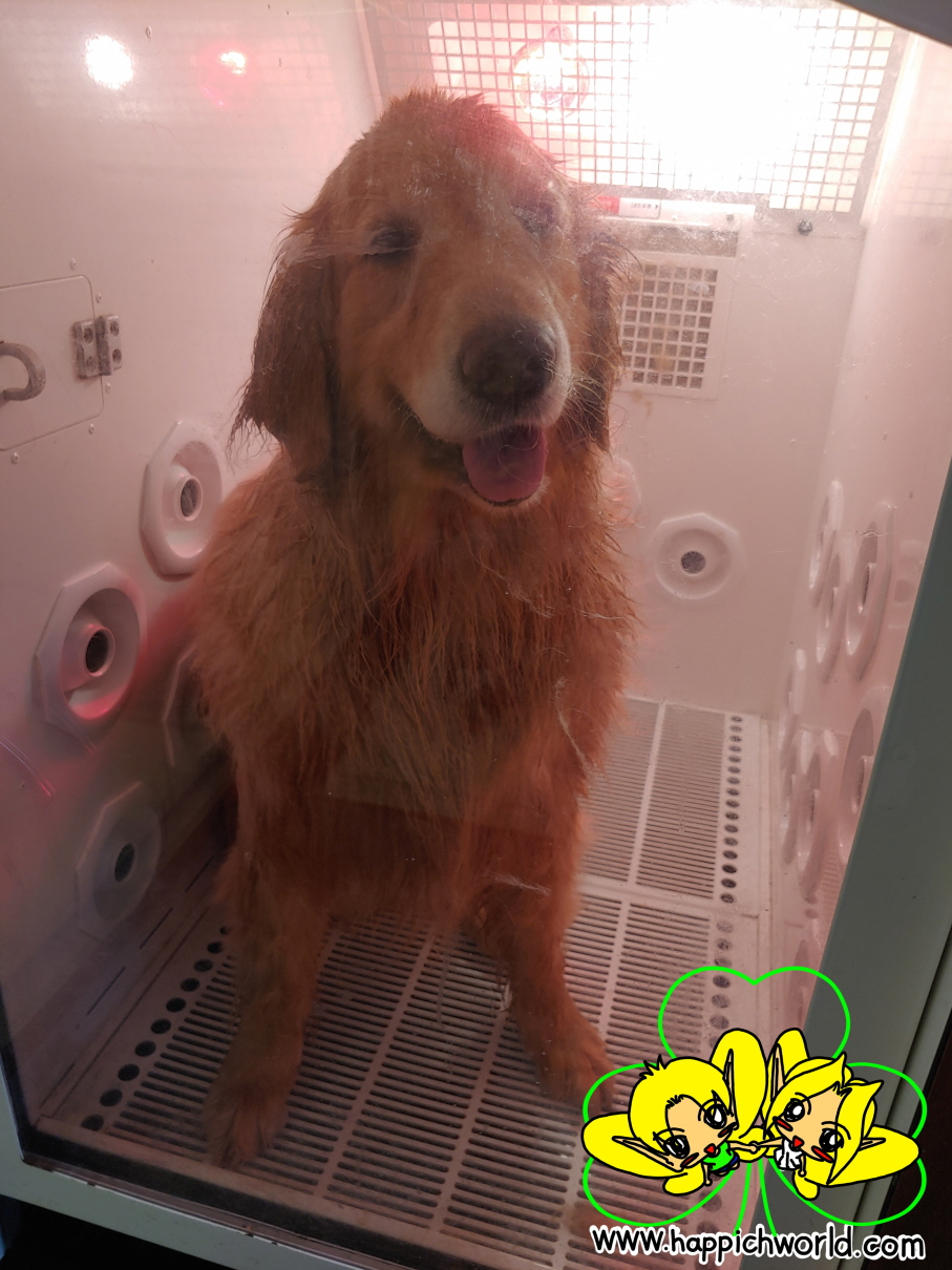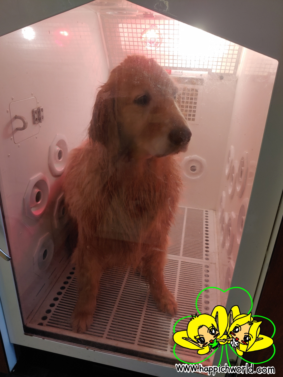 목욕 후 드라이룸에서 털 말리는 메리.ㅎㅎ