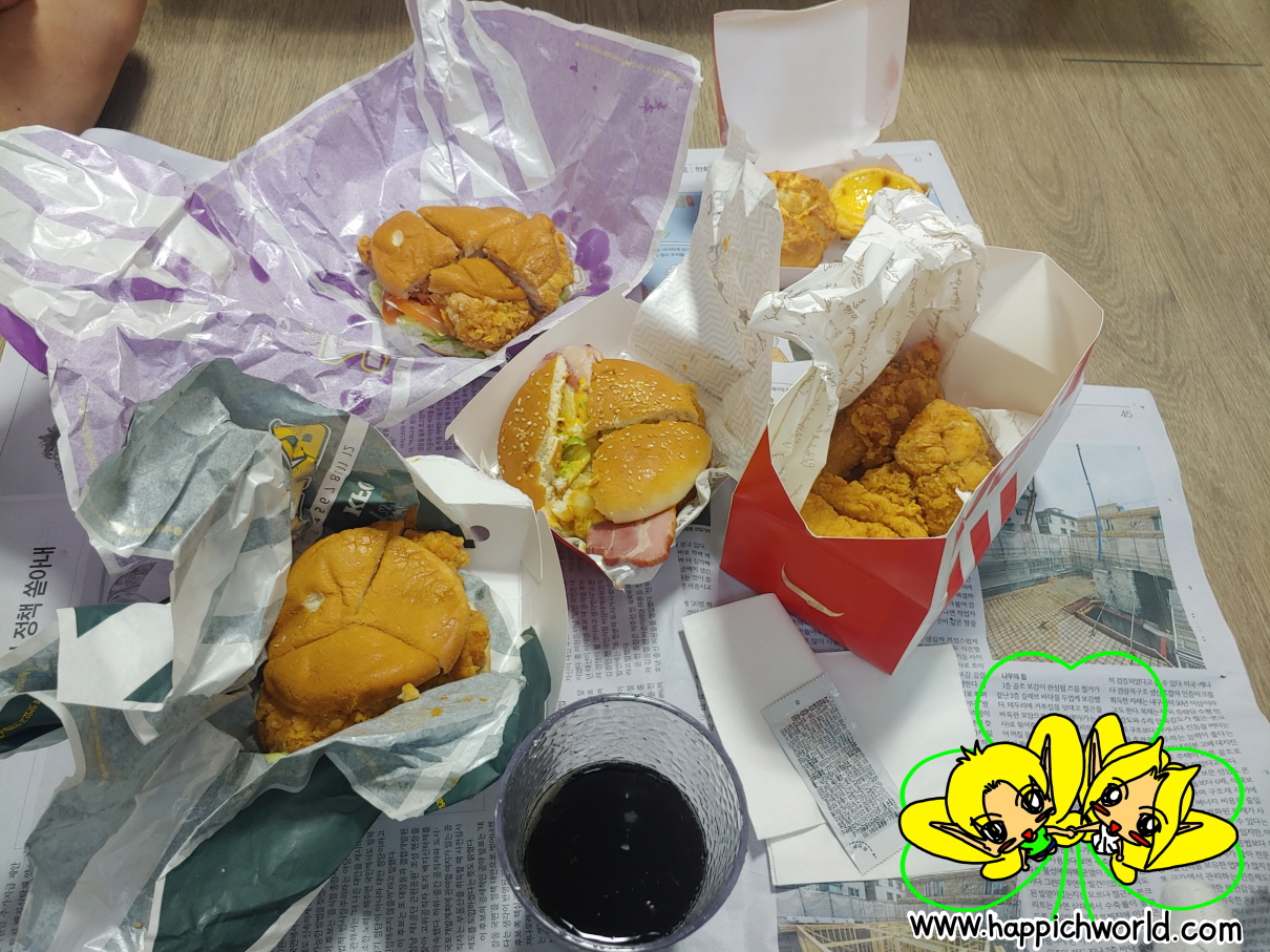 햄버거 시켜서 종류별로 맛 보았어요.ㅎㅎ