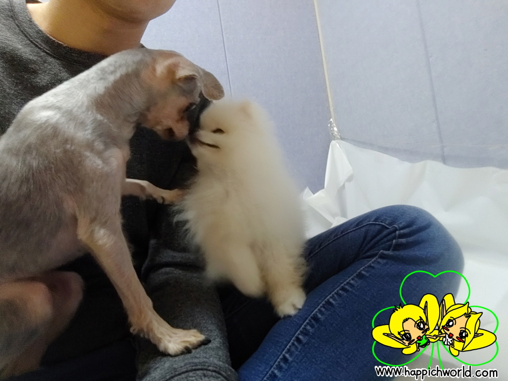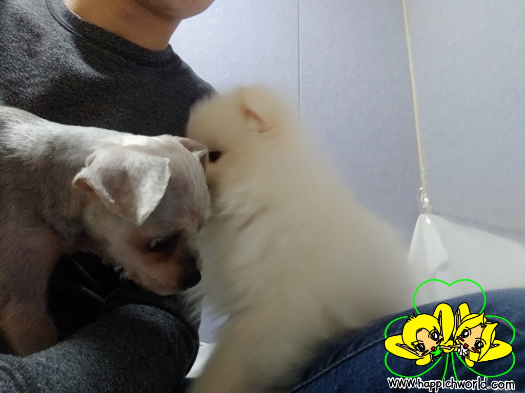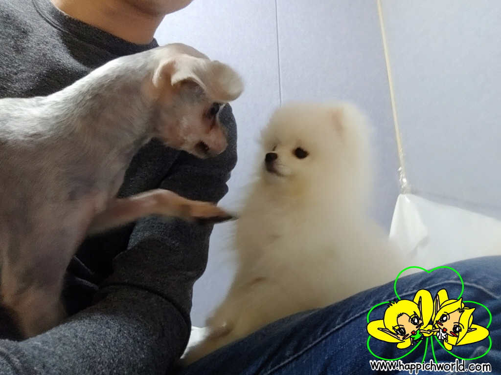 새로운 강아지를 보니깐 해피에게도 좋은 것 같았어요.ㅎㅎ