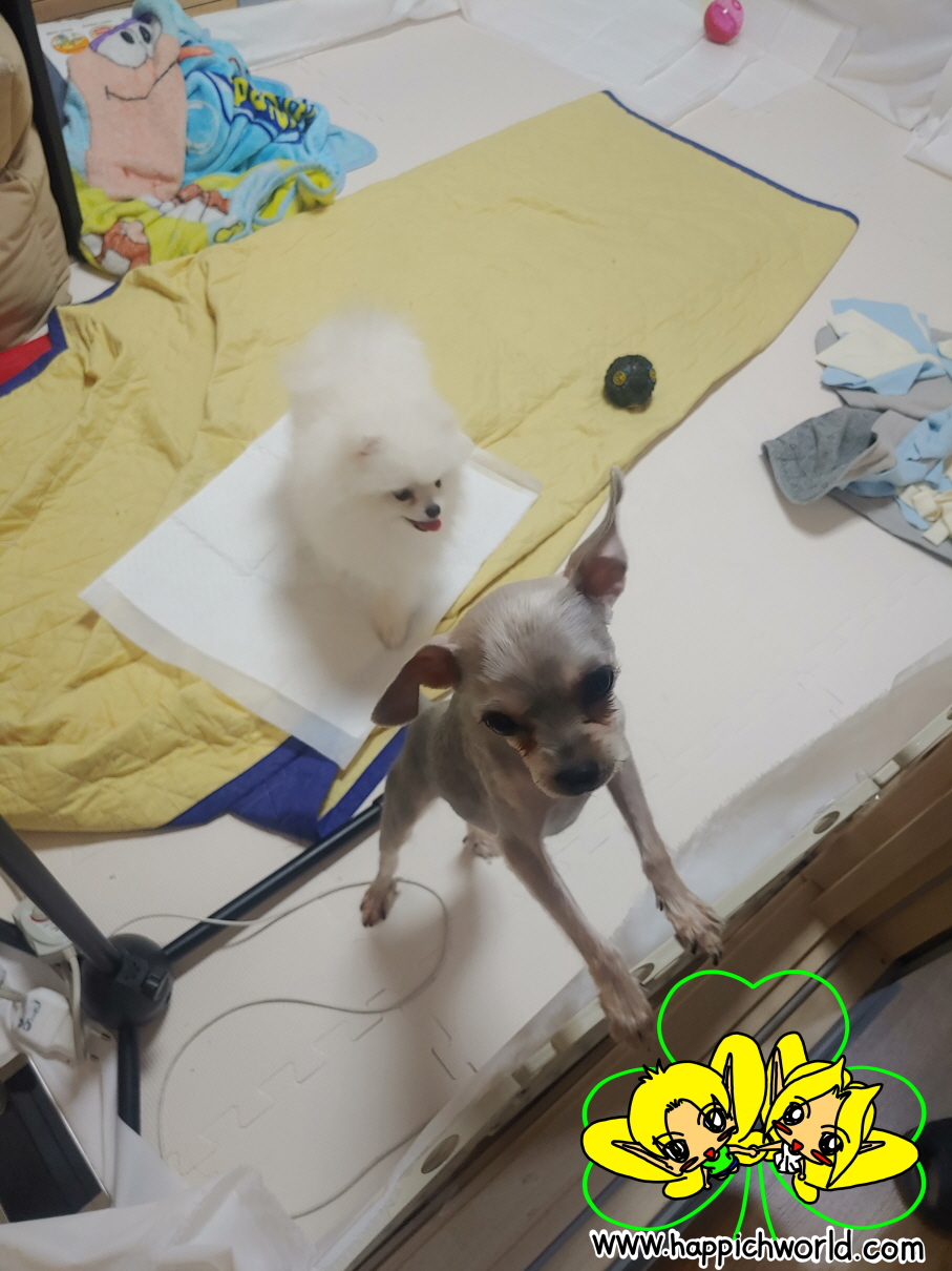 털이 부하게 많은 다온이 옆이라 상대적으로 더 해피가 앙상해 보이네요ㅠㅠㅋㅋ