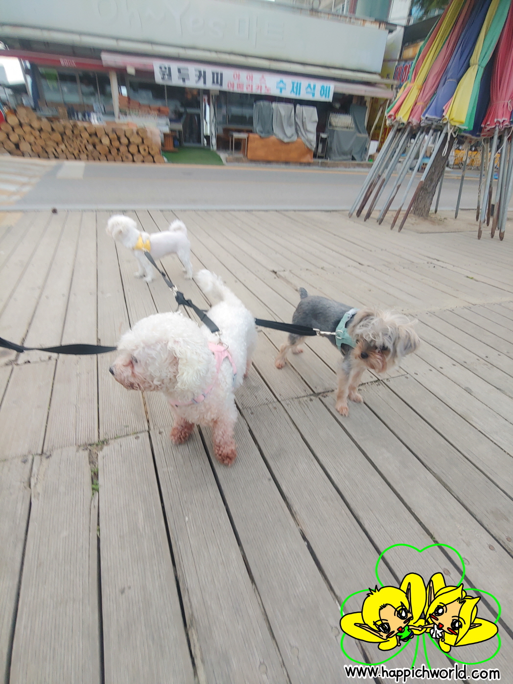 또 강아지들과 같이 걷기 시작했어요.ㅎㅎ