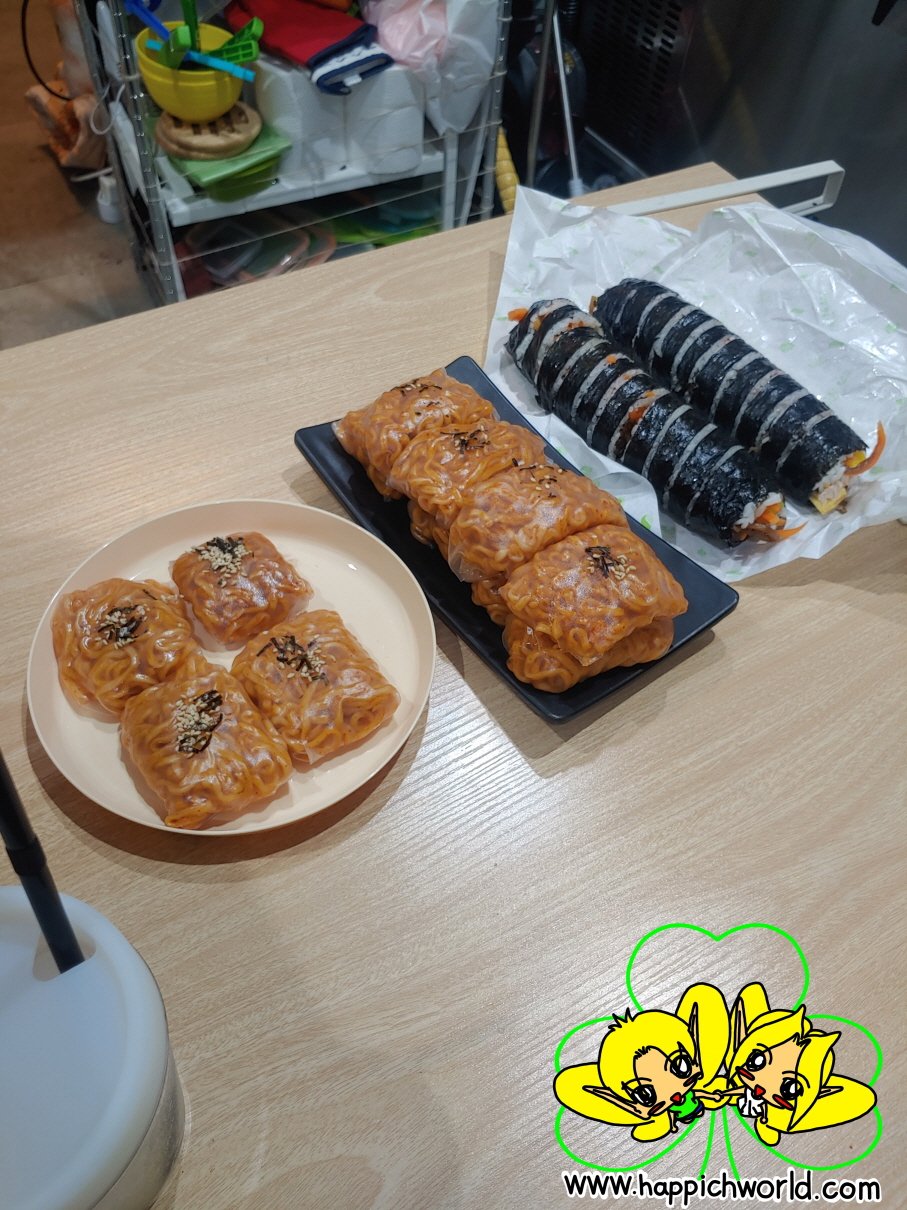 완성하고~, 이것만으로 모자를 것 같아 김밥을 좀 사왔어요.ㅎㅎ