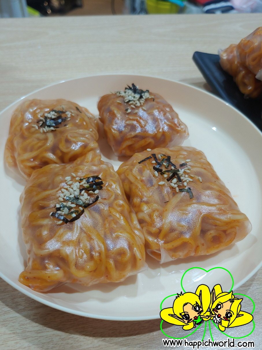 알바했던 초코볼과 만들었던, 라이스 페이퍼로 불닭볶음면 쌈 싸기.ㅎㅎ