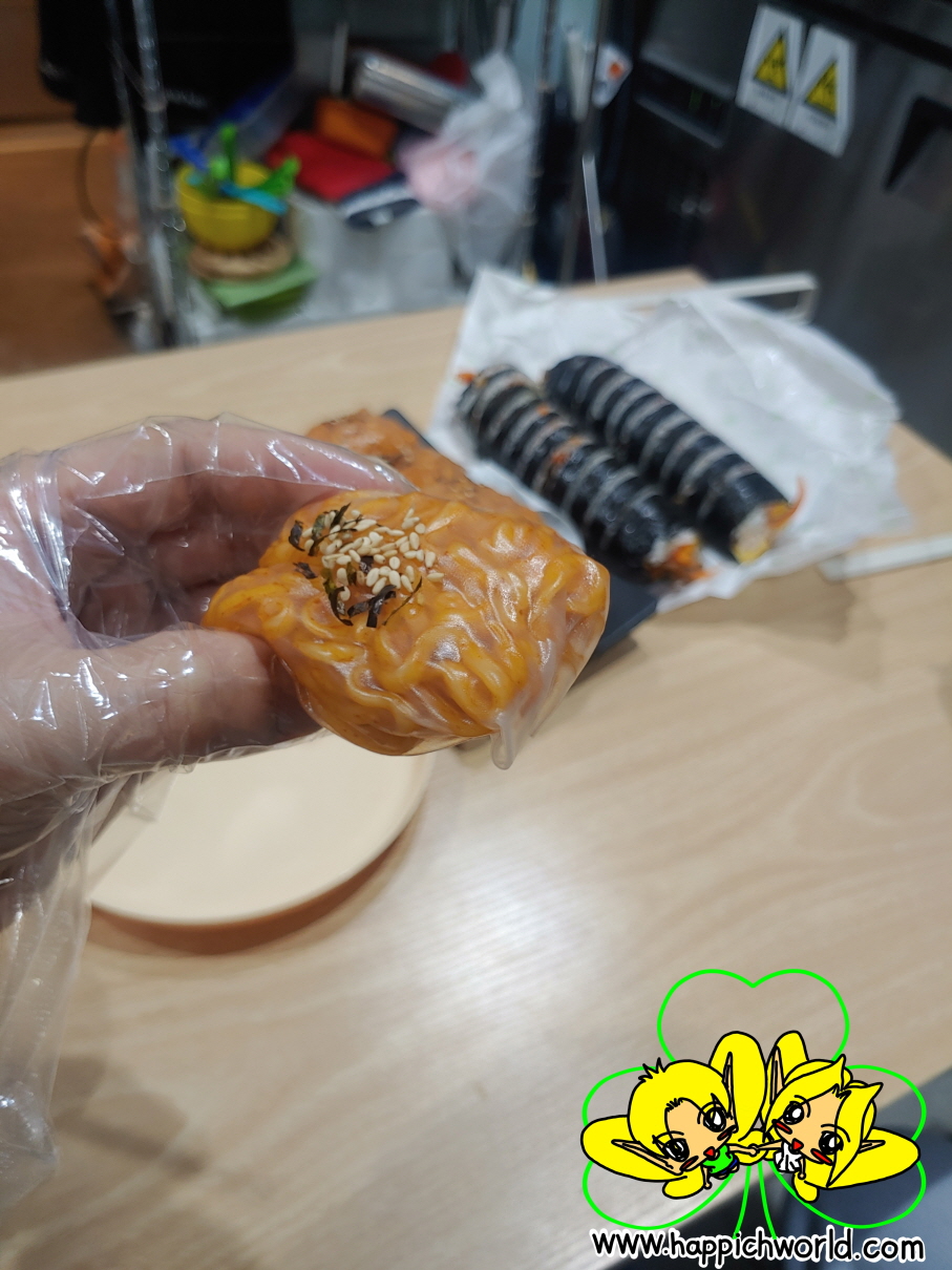 완성하고~, 이것만으로 모자를 것 같아 김밥을 좀 사왔어요.ㅎㅎ