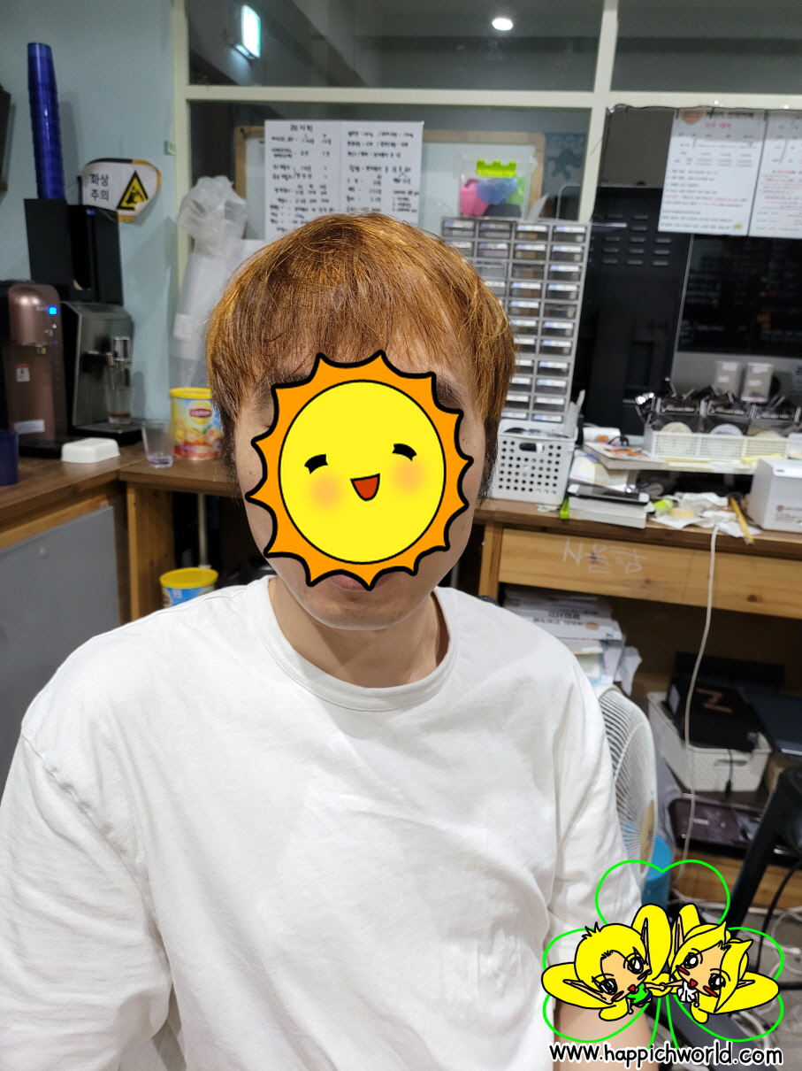 엇, 생각보다 머리가 노랗게 되었네요.ㅎㅎ