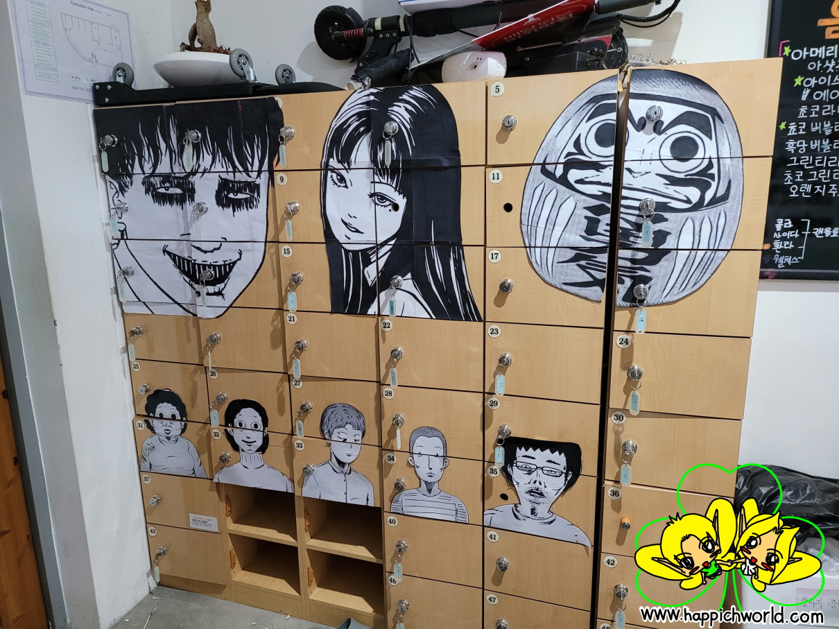 신방장에는 무서운 분위기의 캐릭터들도 그려 붙이고요,
