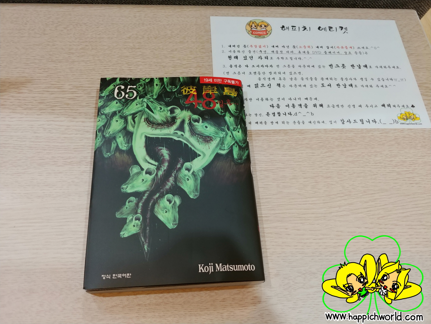 해피치만화카페 | 한정규 | 경기도 수원시 영통구 태장로73 402호(망포동, 정석그린프라자) | 사업자 등록번호 : 203-23-31168 | TEL : 010-5576-5315 | Mail : happichworld@naver.com | 통신판매신고번호 : 호 | 사이버몰의 이용약관 바로가기