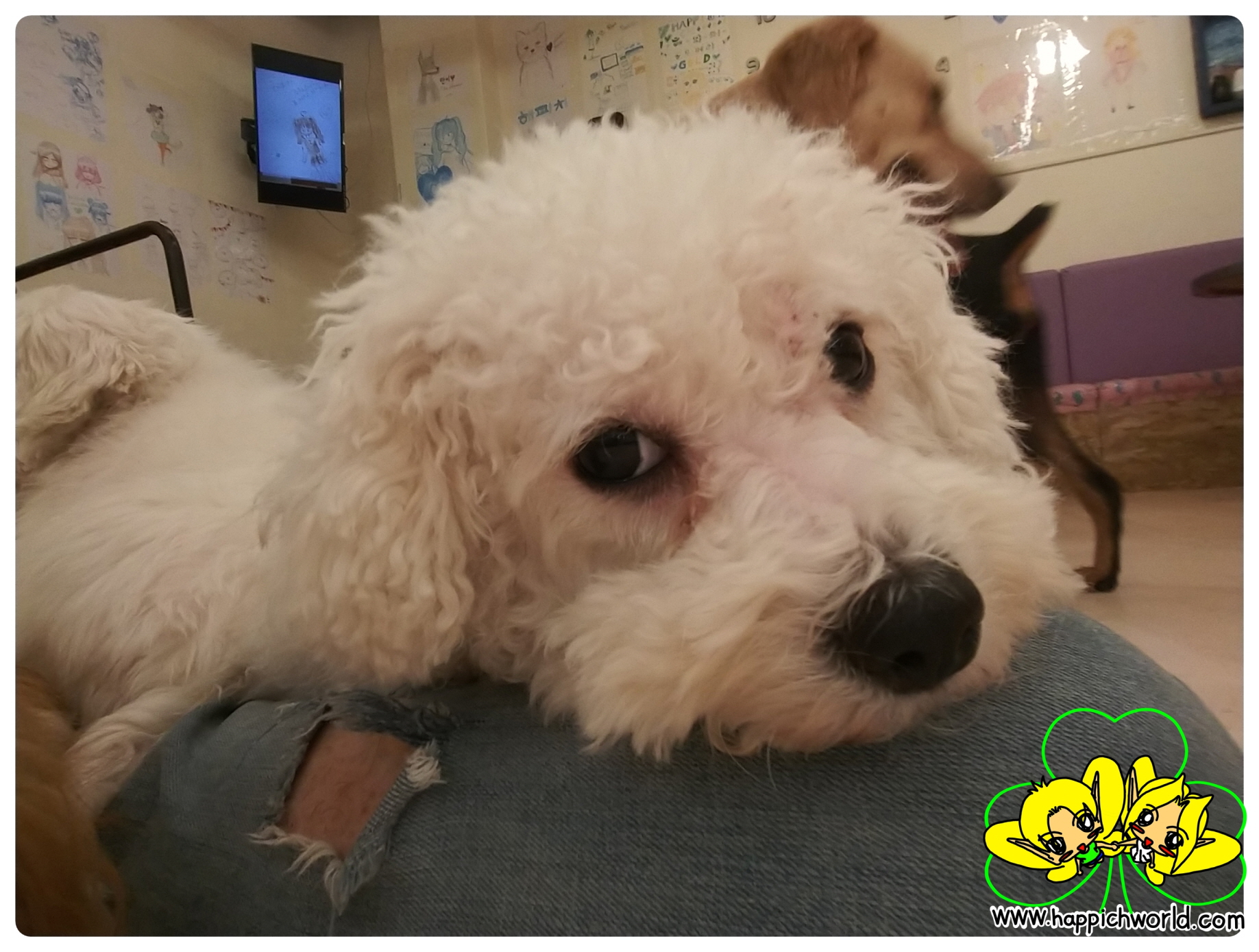 아, 손님 강아지인 땅콩이가 와서 해피가 자리를 옮긴 듯??ㅋ