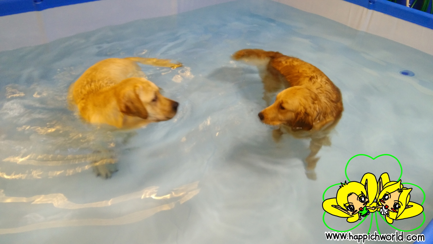 이틀에 나눠서 강아지들이 풀장에 들어가게 해주었어요.ㅎ