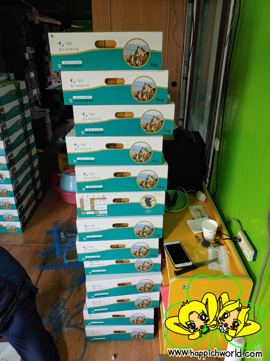 택배 작업하고도 계속 또 작업하느라 쌓여있는 포도들...