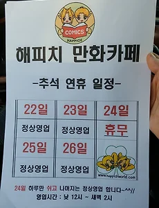 728x90 반응형 영업시간18 해피치 만화카페 추석 연휴 일정입니다^^ 보시는 대로, 이번 연휴 영업 일정은 24일(월요일) 하루 휴무이고 나머지는 다 정상영업 합니다^^ㅎㅎ 영업시간은 변함없이 낮 12시 ~ 새벽 2시 이며, 행복하고 즐겁고 풍성한 추석 연휴 보내시기 바랍니다~~^^//ㅋ 2018. 9. 23. [170313] 수유동 수유역근처 만화방, 만화박물관 수유점 친구 놀러 온 날, 남산으로 나들이 갔다가 돈까스도 먹고 영화 재심도 보고 그리고 마무리로 피씨방을 갈까하다 만화방으로 갔네요.ㅎㅎ 휘황찬란한 간판들 사이에 보이는 만화박물관 간판!!!+.+// 캬~~~~~ 감회가 새롭습니다.ㅎㅎ 작년, 그것도 불과 1년 6개월정도의 일인데... 지금은 내 만화카페인, 해피치 만화카페에서 앉아서 이 만화방 포스팅을 하고 있다니요.ㅋㅋㅋ 언젠가 막연히 만화카페를 하고파서, 참고할 겸 간 거였는데....ㅋㅋㅋㅋ 그 땐 이렇게 빨리 만화카페를 하게 될 줄은 상상도 못했거든요.ㅎㅎ 일단 그 때의 기억으로 돌아가 만화박물관으로 들어가 봅니다~~!!!ㅎㅎ 음..... 제가 잘 아는 건 아니라 뭐라 쓸 글이 없네요...;;;;;;;;;;;;;;ㅋ 사장님께 여쭤보고 내부 사진을 간단히.. 2018. 9. 18. 이전 1 2 3 4 5 다음 728x90 반응형